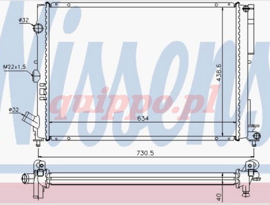 Chłodnica do Renault Laguna Grubość [mm]: 40 Szerokość [mm]: 439 Wysokość [mm]: 634 Materiał: miedź Rodzaj korpusu: obudowa z tworzywa sztucznego Dolot - śr. [mm]: 32 Wylot - śr. [mm]: 32Występuje w: RENAULT LAGUNA (B56_, 556_) 1.8 (B56A/B) (1993.11 - 2001.03); 1794 ccm - 90 KM/66 kW; Silnik: F3P 720; F3P 724 2.2 D (B56F/2) (1993.11 - 2001.03); 2188 ccm - 83 KM/61 kW; Silnik: G8T 706; G8T 752; G8T 790; G8T 794 2.0 (B56C/H/N) (1993.11 - 2001.03); 1998 ccm - 113 KM/83 kW; Silnik: F3R 722; F3R 723 2.0 16V (B56D/M) (1995.06 - 2001.03); 1948 ccm - 139 KM/102 kW; Silnik: N7Q 700; N7Q 704 1.8 (B56S/T/0) (1995.08 - 2001.03); 1783 ccm - 90 KM/66 kW; Silnik: F3P 670; F3P 678 1.8 (B56Z) (1995.08 - 2001.03); 1794 ccm - 94 KM/69 kW; Silnik: F3P 720; F3P 724 3.0 24V (B56V) (1997.03 - 2001.03); 2946 ccm - 190 KM/140 kW; Silnik: L7X 700; L7X 701 2.0 (1993.11 - 2001.03); 1994 ccm - 95 KM/70 kW 2.0 (1999.03 - 2001.03); 1998 ccm - 109 KM/80 kW 2.0 16V (556A/B) (1999.09 - 2001.03); 1998 ccm - 140 KM/103 kW; Silnik: F4R 780 RENAULT LAGUNA Grandtour (K56_) 2.0 16V (K56D/M) (1995.09 - 2001.03); 1948 ccm - 139 KM/102 kW; Silnik: N7Q 700; N7Q 704 1.8 (K56S/T/0) (1995.09 - 2001.03); 1783 ccm - 90 KM/66 kW; Silnik: F3P 670; F3P 678 1.8 (K56Z) (1995.09 - 2001.03); 1794 ccm - 94 KM/69 kW; Silnik: F3P 720; F3P 724 2.0 (K56C/H) (1995.09 - 2001.03); 1998 ccm - 113 KM/83 kW; Silnik: F3R 722; F3R 723 2.2 D (K56F/2, S56F) (1995.09 - 2001.03); 2188 ccm - 83 KM/61 kW; Silnik: G8T 706; G8T 752; G8T 790; G8T 794 3.0 24V (K56V) (1997.03 - 2001.03); 2946 ccm - 190 KM/140 kW; Silnik: L7X 700; L7X 701 W razie trudności z doborem części do danego modelu proszę wysłać zapytanie na maila z numerem nadwozia lub skontaktować się telefonicznie z konsultantem celem doboru właściwej części do danego modelu samochodu.