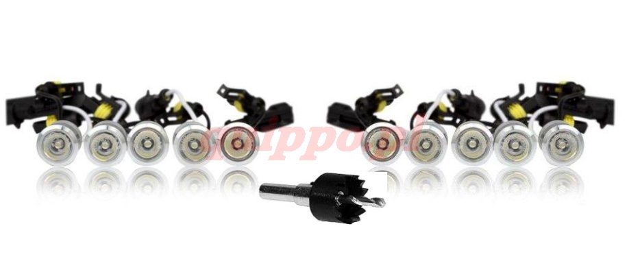 Strona zabudowy: z przodu Kolor srebrny Komplet lamp dziennych w technologii FLEX - pojedyńczych źródeł świetlnych 10 oczek świetlnych o mocy 1W każde Wysoka wodoszczelność IP67 Strumień światła ok 950 Lm Nieograniczona możliwość montażu w zderzaku Łatwość i prostota montażu Inteligentny system poboru mocy - podłączenie pod akumulator Pełna homologacja drogowa E oraz RL